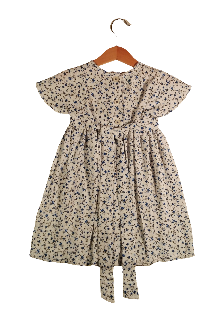 • Load image into Gallery viewer, Dress with wavy sleeves White with blue Flowers